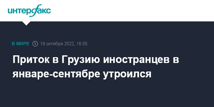 Число визитов международных путешественников в Грузию в январе-сентябре 2022 года выросло втрое по сравнению с аналогичным периодом прошлого года и составило 3,9 млн, что составляет 53,8% относительно уровня января-сентября 2019 года. Из общего числа поездок 2,7 млн были туристическими (рост на 147,5%), это составляет 67,8% относительно уровня 2019 года. Наибольшее число визитов в Грузию в январе-сентябре 2022 года осуществили граждане России.