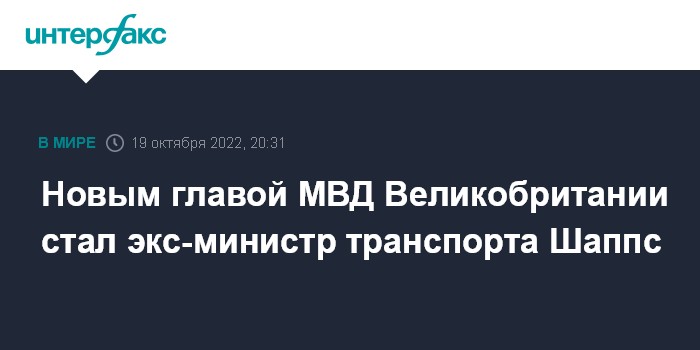 "Член парламента Грант Шаппс назначен главой министерства внутренних дел", - сообщается в твиттере офиса премьер-министра Великобритании Лиз Трасс.