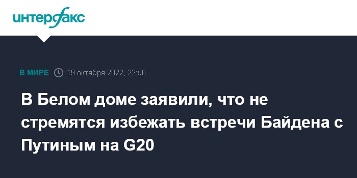 В Белом доме заявили, что не стремятся избежать встречи Байдена с Путиным на G20