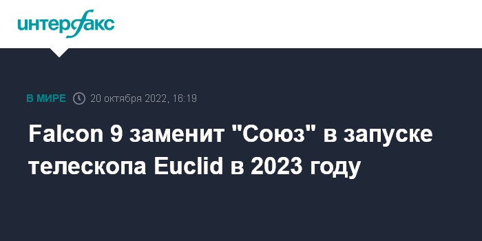 Москва. 20 октября. INTERFAX.RU - Ракета-носитель компании SpaceX Falcon 9 заменит российскую ракету "Союз" в запуске телескопа Euclid в 2023 году. Об этом заявил гендиректор Европейского космического агентства (ESA) Йозеф Ашбахер.