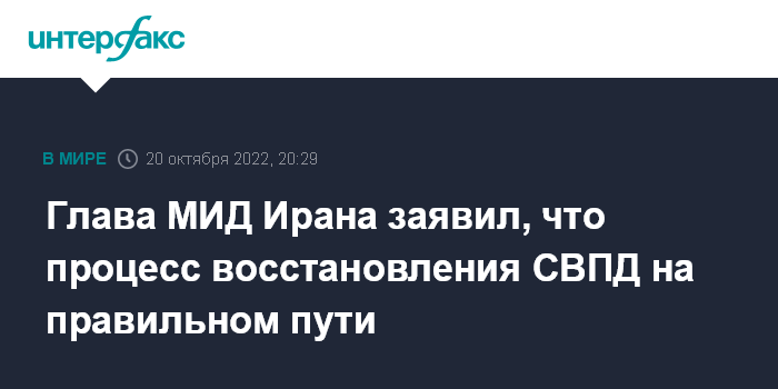 Москва. 20 октября. INTERFAX.RU - Тегеран удовлетворен процессом восстановления Совместного всеобъемлющего плана действий (СВПД) по иранской ядерной программе.