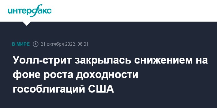 Уолл-стрит закрылась снижением на фоне роста доходности гособлигаций США