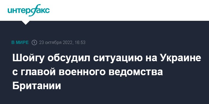"23 октября состоялись телефонные переговоры министра обороны Российской Федерации генерала армии Сергея Шойгу и министра обороны Великобритании Бена Уоллеса. Обсуждена ситуация на Украине", - говорится в сообщении Минобороны РФ.