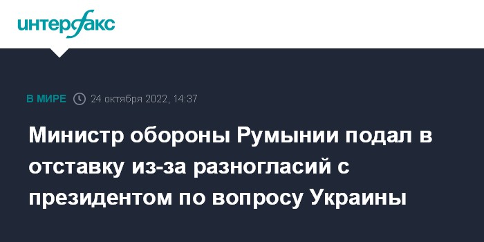 Министр обороны Румынии подал в отставку из-за разногласий с президентом по вопросу Украины