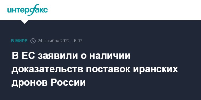 "Мы примем другие меры, если будут доказательства продолжения таких поставок", - сказал Стано, отвечая на просьбу прокомментировать, почему Совет ЕС по иностранным делам 17 октября не принял санкции против Ирана за беспилотники, ссылаясь на недостаток доказательств, а к саммиту Евросоюза 20-21 октября такое решение было срочно принято.