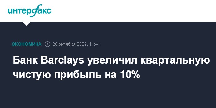 Москва. 26 октября. INTERFAX.RU - В III квартале 2022 года британский банк Barclays Plc увеличил чистую прибыль на 10%, лучше прогнозов аналитиков.