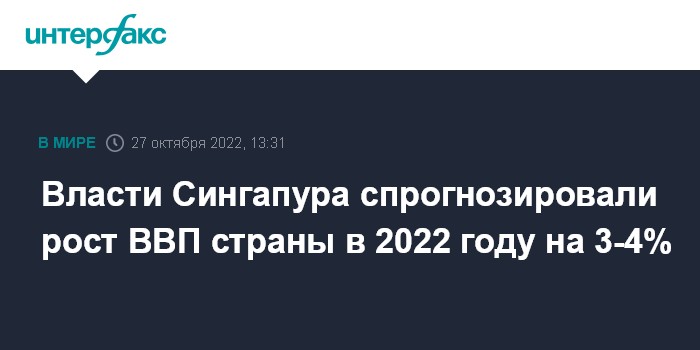 Москва. 27 октября. INTERFAX.RU - ВВП Сингапура по итогам 2022 года вырастет на 3-4%, прогнозирует Денежно-кредитное управление страны (MAS, выполняет функции центрального банка).