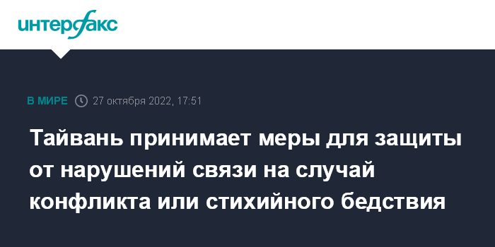 Тайвань принимает меры для защиты от нарушений связи на случай конфликта или стихийного бедствия