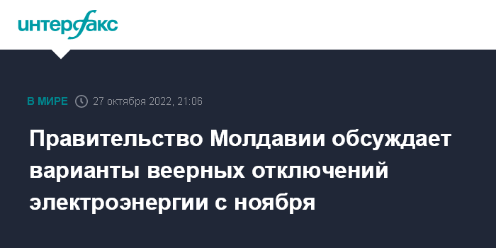 Правительство Молдавии обсуждает варианты веерных отключений электроэнергии с ноября
