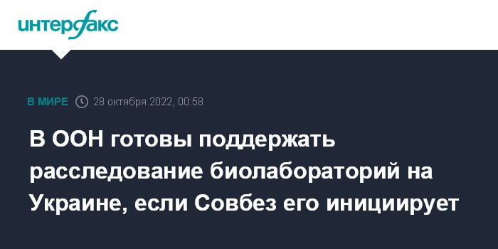 В ООН готовы поддержать расследование биолабораторий на Украине, если Совбез его инициирует