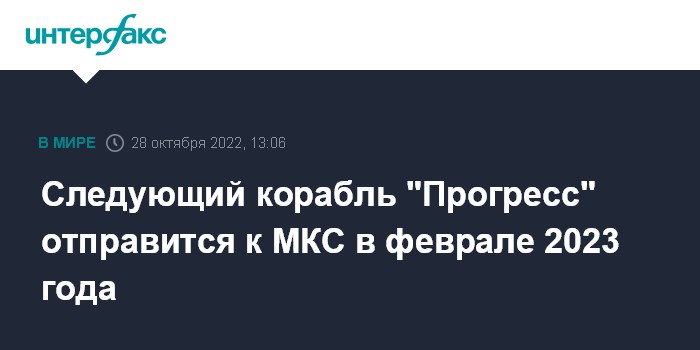 Следующий корабль "Прогресс" отправится к МКС в феврале 2023 года