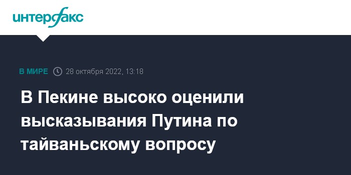В Пекине высоко оценили высказывания Путина по тайваньскому вопросу