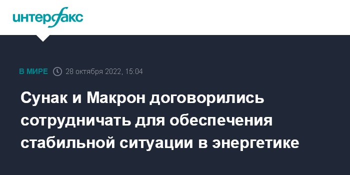 Сунак и Макрон договорились сотрудничать для обеспечения стабильной ситуации в энергетике