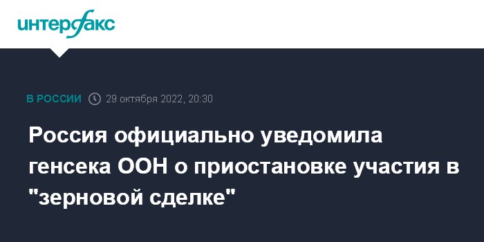 Россия официально уведомила генсека ООН о приостановке участия в "зерновой сделке"