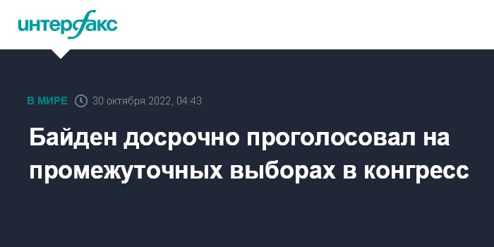 Москва. 30 октября. INTERFAX.RU - Президент США Джо Байден в штате Делавэр досрочно проголосовал на промежуточных выборах в американский конгресс, сообщила пресс-служба Белого дома.