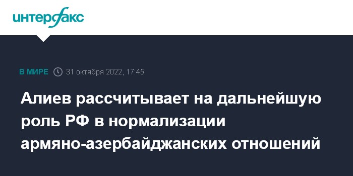 Алиев рассчитывает на дальнейшую роль РФ в нормализации армяно-азербайджанских отношений
