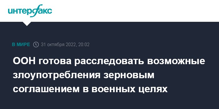 ООН готова расследовать возможные злоупотребления зерновым соглашением в военных целях