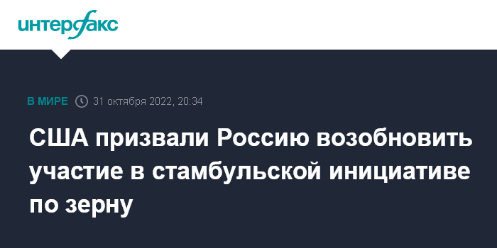 США призвали Россию возобновить участие в стамбульской инициативе по зерну