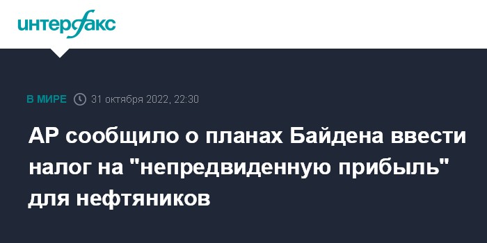 Агентство отмечает, что источник не использовал прямо формулировку "налог на непредвиденную прибыль", однако, по мнению американских СМИ, инициатива Байдена связана именно с крупной прибылью, о которой отчитались такие компании как Exxon Mobil, Chevron и Shell в период с июля по сентябрь 2022 года.