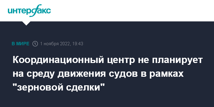 "Делегации Украины, Турции и ООН в СКЦ договорились не планировать какое-либо движение судов в рамках Черноморской зерновой инициативы на 2 ноября", - говорится в сообщении.