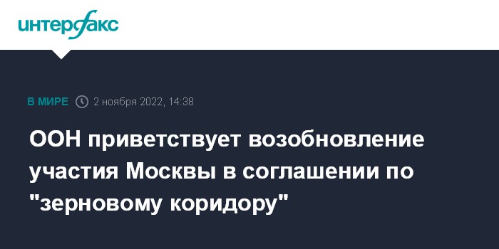 ООН приветствует возобновление участия Москвы в соглашении по "зерновому коридору"