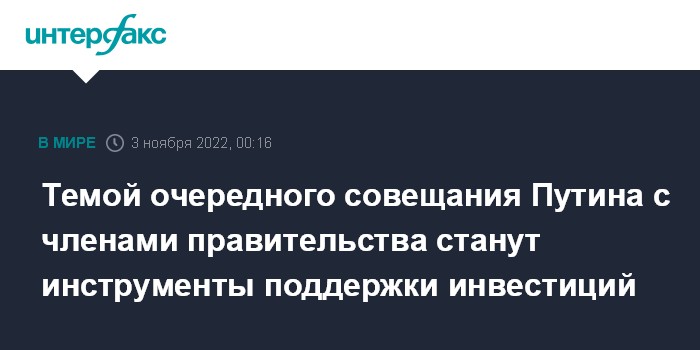 Темой очередного совещания Путина с членами правительства станут инструменты поддержки инвестиций