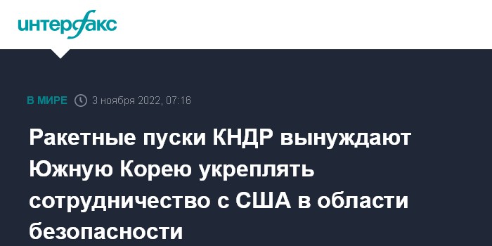 Москва. 3 ноября. INTERFAX.RU - Последние пуски ракет Северной Кореей свидетельствуют о необходимости дальнейшего укрепления сотрудничества Сеула и Вашингтона в области безопасности и сдерживания, говорится в сообщении администрации президента Южной Кореи по итогам заседания Совета национальной безопасности в четверг.