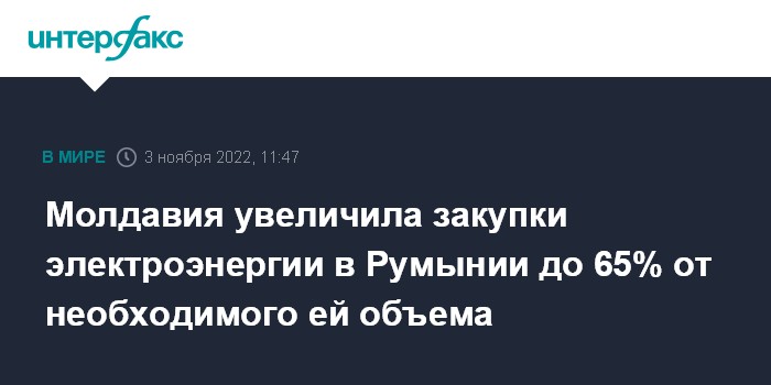 1 ноября дефицит электроэнергии в стране составлял 40%. Власти Молдавии каждый день отчитываются об объемах закупленной энергии.