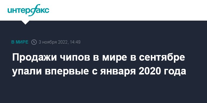 Продажи чипов в мире в сентябре упали впервые с января 2020 года
