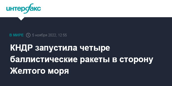 Москва. 5 ноября. INTERFAX.RU - Северокорейские военные провели пуск в сторону Желтого моря четырех баллистических ракет малой дальности, сообщает агентство "Ренхап" со ссылкой на южнокорейское военное командование.