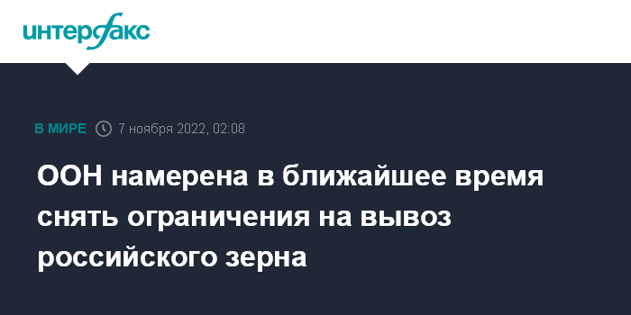 ООН намерена в ближайшее время снять ограничения на вывоз российского зерна