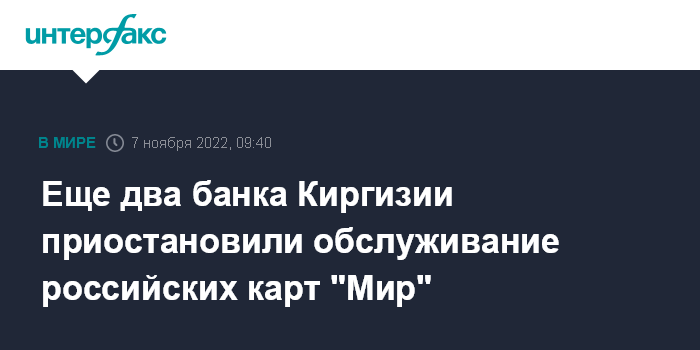 Еще два банка Киргизии приостановили обслуживание российских карт "Мир"