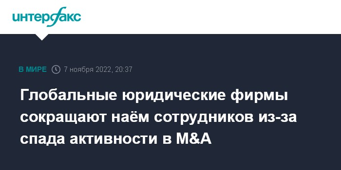 Глобальные юридические фирмы сокращают наём сотрудников из-за спада активности в M&A