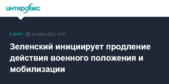С тех пор президент Украины три раза продлевал военное положение и сроки мобилизации, парламент утверждал соответствующие указы. Предыдущий раз эти сроки были продлены 15 августа на 90 суток, до 23 ноября.