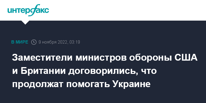 Заместители министров обороны США и Британии договорились, что продолжат помогать Украине