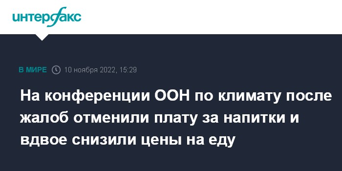 Москва. 10 ноября. INTERFAX.RU - Организаторы конференции ООН по климату в Шарм эш-Шейхе отменили плату для участников мероприятия за безалкогольные напитки и вдвое снизили цены на еду, сообщил глава МИД Египта Самех Шукри.