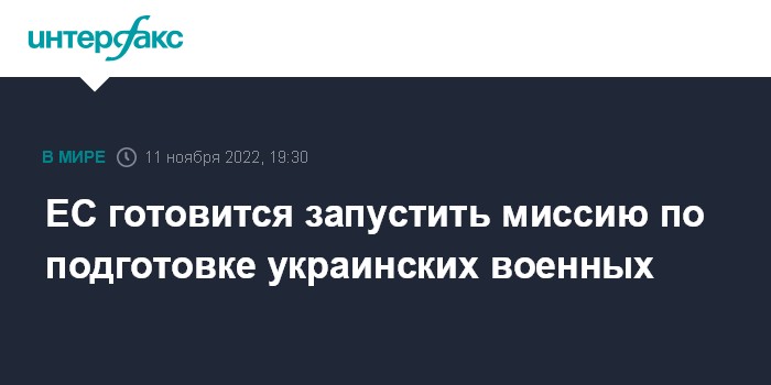 Москва. 11 ноября. INTERFAX.RU - Евросоюз на следующей неделе запустит миссию по подготовке военных для вооруженных сил Украины – EUMAM Ukraine, сообщил в пятницу журналистам в Брюсселе высокопоставленный чиновник ЕС.