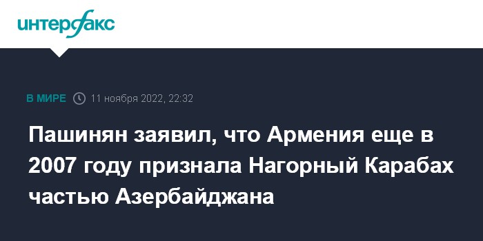Пашинян заявил, что Армения еще в 2007 году признала Нагорный Карабах частью Азербайджана
