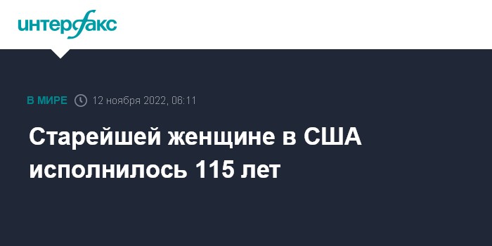 Москва. 12 ноября. INTERFAX.RU - Женщина из Айовы, которая была признана старейшим живущим человеком в Соединенных Штатах в начале этого года, отпраздновала свой 115-й день рождения. Об этом сообщает агентство United Press International.