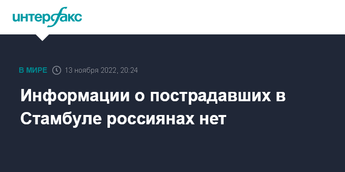 Москва. 13 ноября. INTERFAX.RU - Информации о пострадавших россиянах при взрыве на улице Истикляль в Стамбуле пока нет, сообщает Генконсульство РФ в Стамбуле.