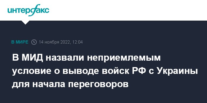 Москва. 14 ноября. INTERFAX.RU - Вывод российских войск с территории Украины неприемлем для Москвы в качестве предварительного условия для начала переговоров, заявил замглавы МИД РФ Александр Грушко.