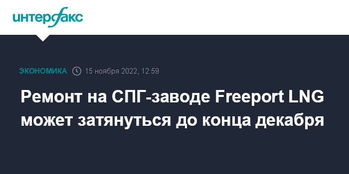 В августе Freeport LNG сообщала, что планирует восстановить полноценную работу предприятия в начале-середине ноября.