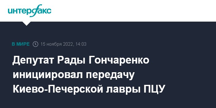 По мнению Гончаренко, которое он изложил во вторник в своем телеграм-канале, правительство Украины должно, используя свои полномочия, расторгнуть договоры аренды и передать два главных монастыря страны ПЦУ (Православная церковь Украины, созданная в 2018 году на базе неканонических религиозных организаций - ИФ).