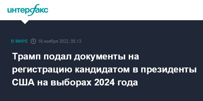 Трамп подал документы на регистрацию кандидатом в президенты США на выборах 2024 года