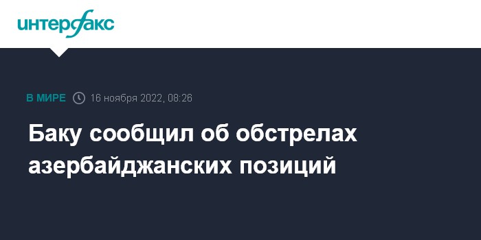 Москва. 16 ноября. INTERFAX.RU - Министерство обороны Азербайджана сообщило об обстреле во вторник вечером позиций азербайджанской армии со стороны Вооруженных сил Армении на границе двух государств, Минобороны Армении назвало это сообщение дезинформацией.