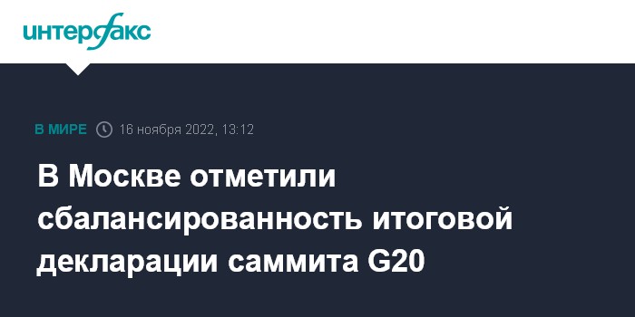 В Москве отметили сбалансированность итоговой декларации саммита G20