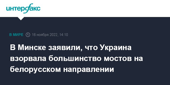 Москва. 16 ноября. INTERFAX.RU - Украина разрушила большинство мостов на белорусском направлении, заявил в среду председатель Государственного пограничного комитета Белоруссии Анатолий Лаппо.