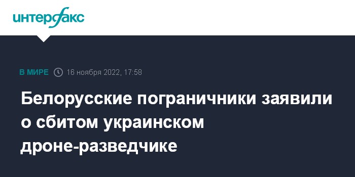 Москва. 16 ноября. INTERFAX.RU - Госпогранкомитет Белоруссии сообщил о беспилотнике, сбитом в среду на границе с Украиной и назвал это "украинской провокацией".