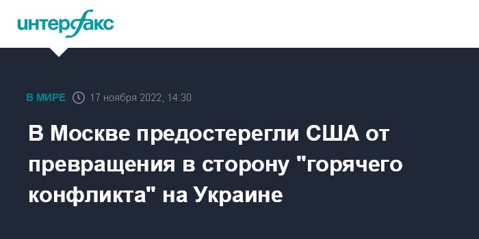 Москва. 17 ноября. INTERFAX.RU - Россия предостерегает США от превращения в сторону "горячего" конфликта на Украине, заявил замглавы МИД РФ Сергей Рябков.