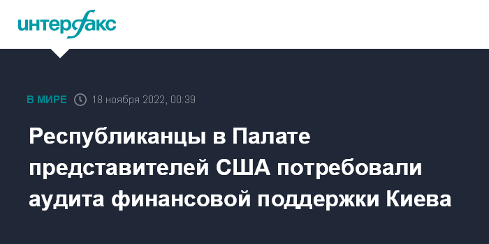 Республиканцы в Палате представителей США потребовали аудита финансовой поддержки Киева